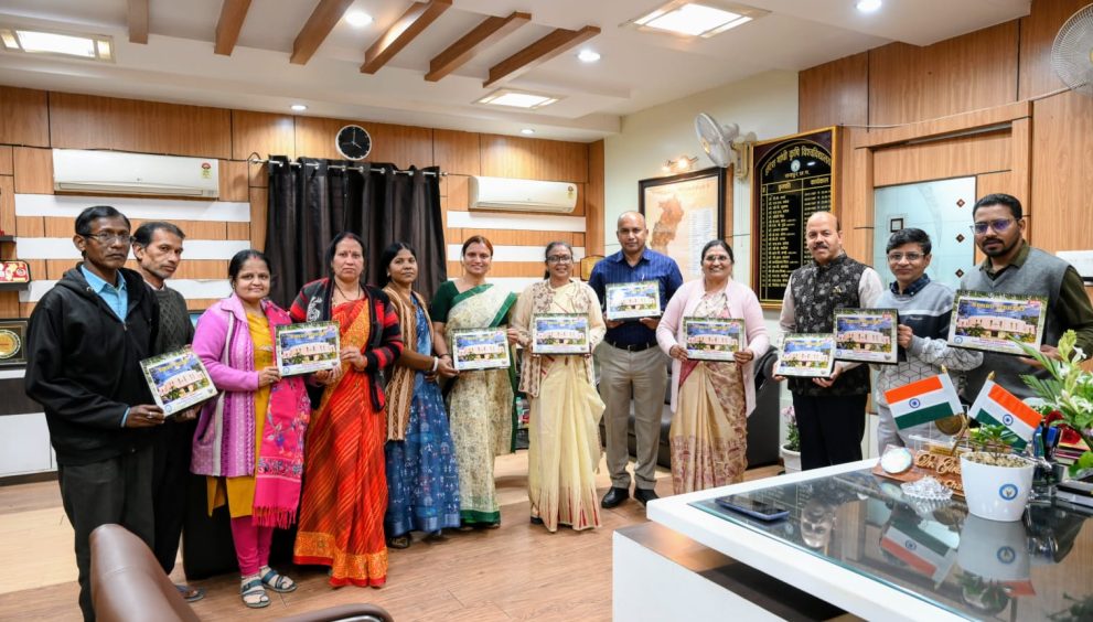 रायपुर। इंदिरा गांधी कृषि विश्वविद्यालय रायपुर के कुलपति डॉ. गिरीश चंदेल ने आज यहां नेहरू पुस्तकालय द्वारा प्रकाशित टेबल कैलेंडर 2026 का विमोचन किया। इस कैलेंडर में विश्वविद्यालय द्वारा वर्ष 2025 में आयोजित शैक्षणिक एवं पाठ्य सहगामी गतिविधियों को सुरूचिपूर्ण रूप में प्रस्तुत किया गया है। इस अवसर पर कृषि महाविद्यालय रापयुर की अधिष्ठाता एवं नेहरू पुस्तकालाध्यक्ष डाॅ. आरती गुहे, सहायक पुस्तकालाध्यक्ष श्रीमति माधुरी गौतम, कृषि महाविद्यालय रायपुर के तकनीकी अधिकारी डाॅ. रामा मोहन सावू, सूचना एवं जनसंपर्क अधिकारी संजय नैयर सहित नेहरू पुस्तकालय के कर्मचारी भी उपस्थित थे।