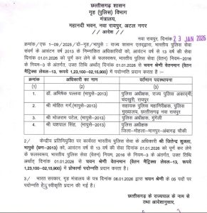 CG IPS Transfer : छत्तीसगढ़ में डेढ़ दर्जन आईपीएस अफसरों को प्रमोशन गृह मंत्रालय ने जारी किए अलग-अलग आदेश