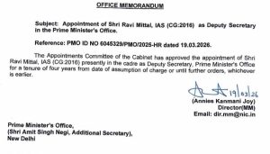 प्रशासनिक दृष्टि से यह पद बेहद महत्वपूर्ण माना जाता है, क्योंकि पीएमओ में डिप्टी सेक्रेटरी नीति निर्माण, विभिन्न मंत्रालयों के बीच समन्वय और उच्चस्तरीय निर्णय प्रक्रिया में अहम भूमिका निभाता है।