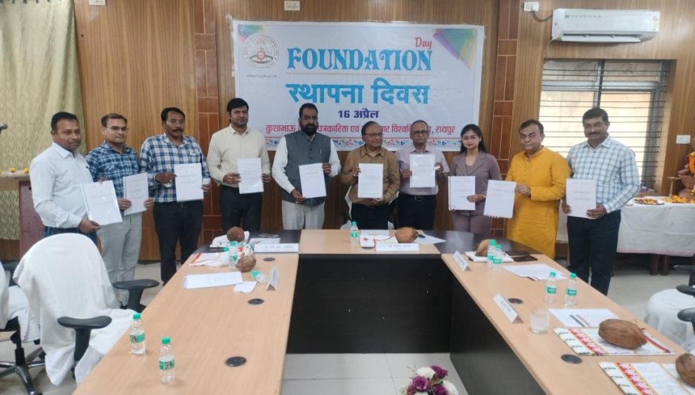 रायपुर। कुशाभाऊ ठाकरे पत्रकारिता एवं जनसंचार विश्वविद्यालय में 22 वां स्थापना दिवस समारोह 16 अप्रैल गुरुवार को हर्षोल्लास के साथ मनाया गया। मुख्य अतिथि के बतौर प्रो. रवि आर सक्सेना कुलपति, महात्मा गांधी उद्यानिकी एवं वानिकी विश्वविद्यालय, विशिष्ट अतिथि आर. कृष्णा दास मुख्यमंत्री के सलाहकार और प्रभात मिश्र अध्यक्ष छत्तीसगढ़ राजभाषा आयोग रहे।