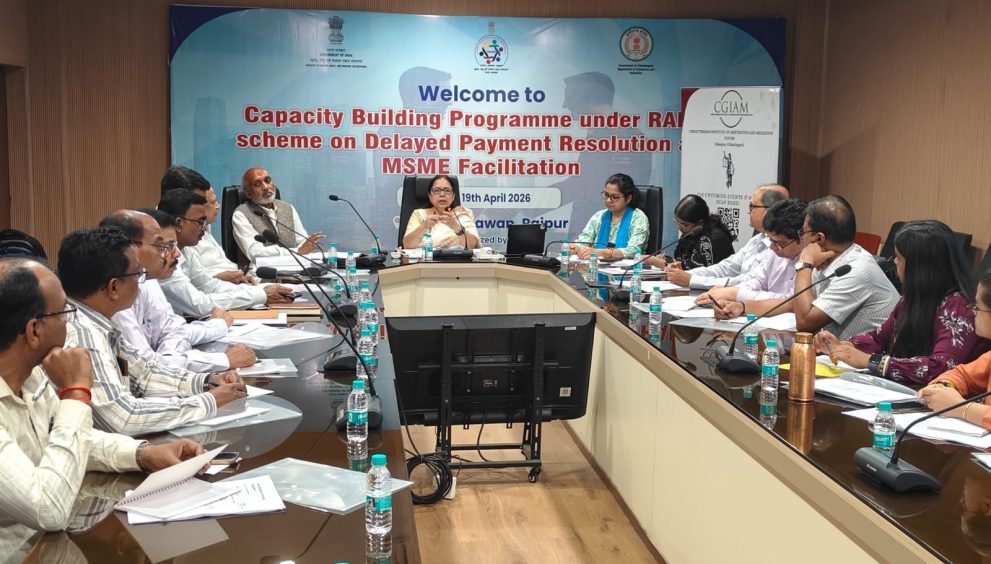 रायपुर। छत्तीसगढ़ शासन के वाणिज्य एवं उद्योग विभाग द्वारा भारत सरकार की RAMP योजना के तहत “विलंबित भुगतान समाधान एवं MSME सुगमिकीकरण” विषय पर दो दिवसीय क्षमता निर्माण कार्यक्रम 18 और 19 अप्रैल को उद्योग भवन, रायपुर में सफलतापूर्वक आयोजित किया गया।