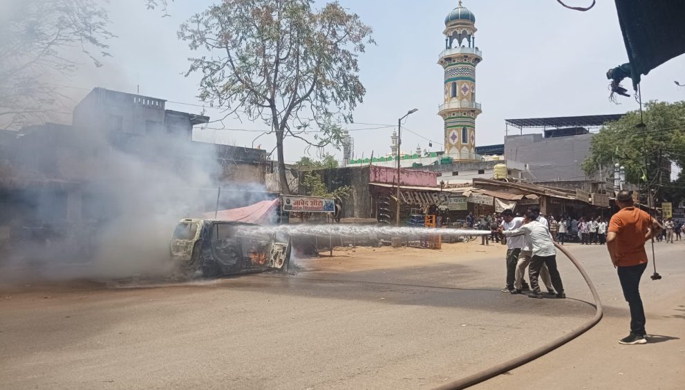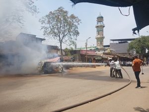 बाजार चौक में खड़ी गाड़ी में शॉर्ट सर्किट से लगी आग , पुलिस व फायरब्रिगेड ने मिलकर बुझाई आग