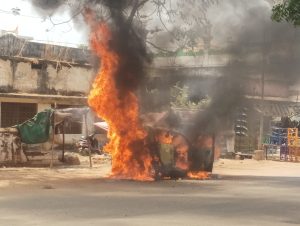 नगर पिछले कई दिनों से भीषण तेज गर्मी से झुलस रहा है । पारा 45 क्रास कर चुका है । टेक गर्मी के चलते बाजार की रौनक भी गायब है ऐसे में जरूरी काम वाले ही बाहर निकल रहे हैं । ग्राम दुलारपाली के हेमलाल साहू आवश्यक कार्य से सरायपाली आए हुवे थे । बाजार चौक में चप्पल सिलाने के लिए वे दुकान जाने के बाद अचानक उन्होंने देखा कि इंजन के तरफ से हल्की आग निकल रही है कुछ समझ में आता इसके पहले ही देखते ही आग पूरी तरह वैगनआर कार को अपने चपेट में ले ली । पुलिस व नगरपालिका को इसकी सूचना दिए जाने के बाद टीआई नितेश ठाकुर अपने पुलिस बल के तत्काल घटना स्थल पर पहुंचकर सुरक्षा को देखते हुवे लोगों को जलती कार से दूर रहने की सलाह दी । उसी समय नगरपालिका की फायर ब्रिगेड खराब होने के कारण महासमुंद से अस्थाई तौर पर मंगाए गए फायर ब्रिगेड भी पहुंच गई। पुलिस , नगरपालिका व फायर ब्रिगेड की संयुक्त प्रयास से तत्काल आग बुझाई जा सकी किंतु तब तक कार पूरी तरह जल चुकी थी ।