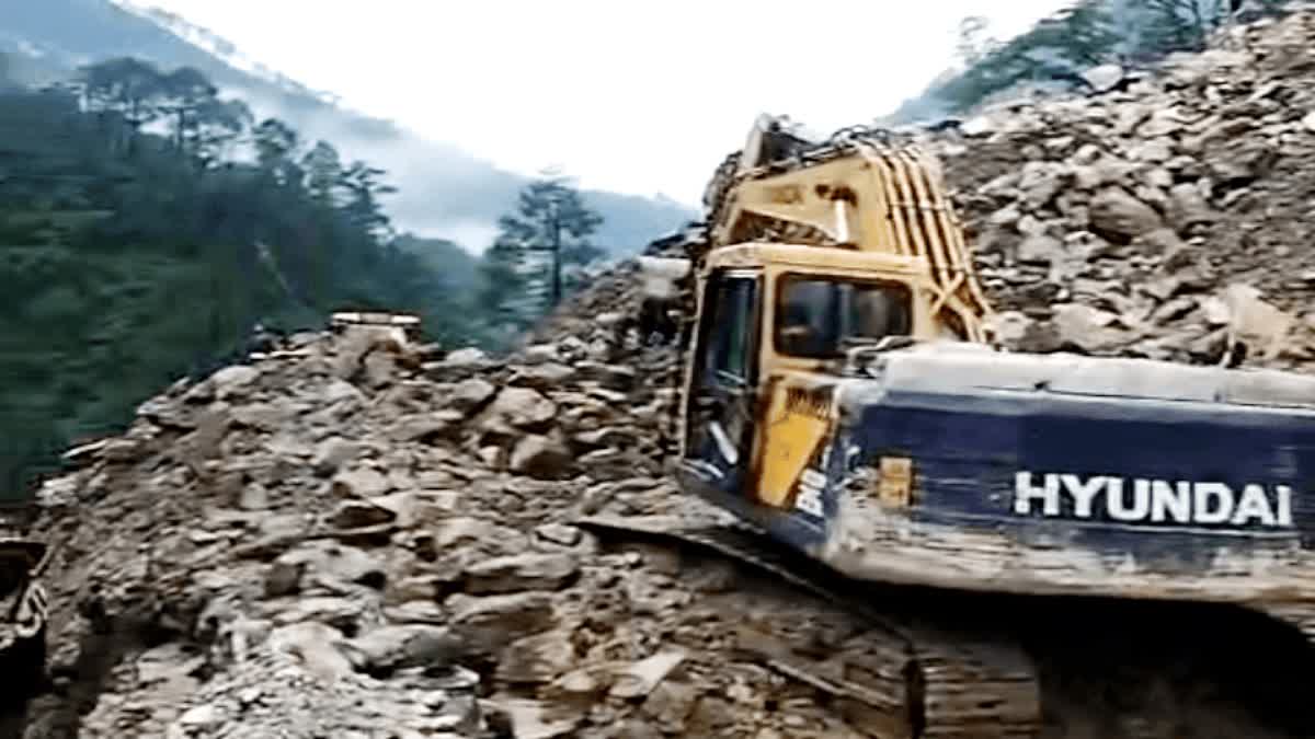 यमुनोत्री हाईवे के पास भू-धंसाव से यातायात बाधित,सुबह से सैकड़ों श्रद्धालुओं के वाहन फंसे