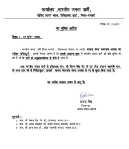 छत्तीसगढ़ में भाजपा के एक मंडल अध्यक्ष को पद से हटाया गया