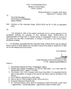छत्तीसगढ़ कैडर के IPS आशुतोष सिंह CBI में देंगे अपनी सेवा , प्रतिनियुक्ति आदेश जारी