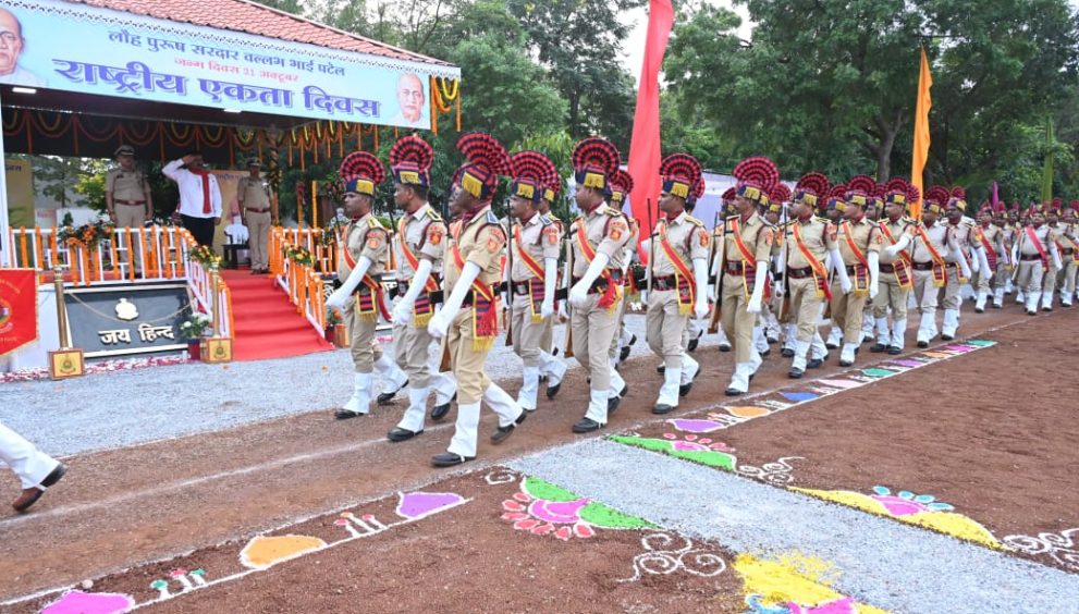 रायपुर। छत्तीसगढ़ पुलिस के द्वारा 31 अक्टूबर को लौह पुरुष सरदार वल्लभ भाई पटेल की 150 वीं जयंती पर छत्तीसगढ़ सशस्त्र बल के 4 थीं वाहिनी में आयोजित राष्ट्रीय एकता दिवस परेड समारोह में मुख्य अतिथि के रूप में उपमुख्यमंत्री एवं गृहमंत्री श्री विजय शर्मा शामिल हुए। इस अवसर पर गृहमंत्री श्री शर्मा ने सभी को एकता दिवस की शपथ भी दिलाई एवं मार्च पास्ट का अवलोकन करने के साथ परेड की सलामी ली।
