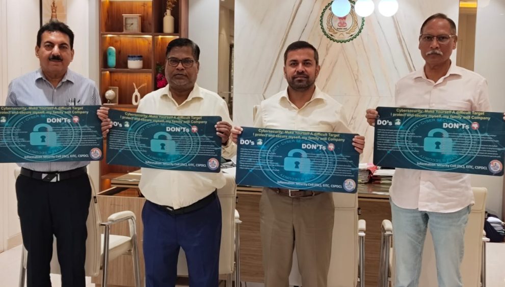 सायबर सुरक्षा संक्षेपिका और कंप्यूटर डेस्क मैट के विमोचन अवसर पर कार्यपालक निदेशक (ईआईटीसी) श्री विनोद कुमार साय, अधीक्षण अभियंता (आईएससी) श्री विकास शर्मा समेत अन्य वरिष्ठ अधिकारी मौजूद थे। उल्लेखनीय है कि सायबर सुरक्षा के मापदण्डों का कड़ाई से पालन सुनिश्चत करने के कारण सीएसपीडीसीएल को विगत दस वर्षों से आईएसओ 27001 प्रमाण पत्र प्रदान किया गया है जो कि “सूचना सुरक्षा प्रबंधन प्रणाली” लागू होने का द्योतक है। यहाँ हर वर्ष केन्द्रीय स्तर की जाँच एजेंसी सायबर सुरक्षा संबंधी समीक्षा भी करती है।