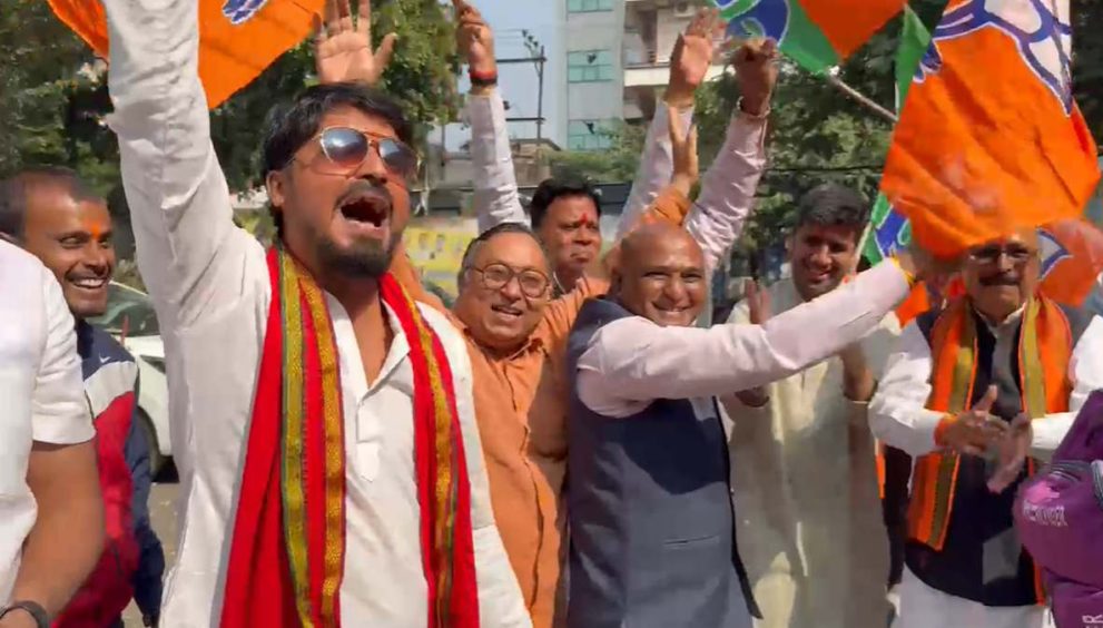 बिहार चुनाव में एनडीए को पूर्ण बहुमत पर छत्तीसगढ़ में ख़ुशी से झूम उठे भाजपाई, ढोल-नगाड़ों के साथ हुई आतिशबाजी