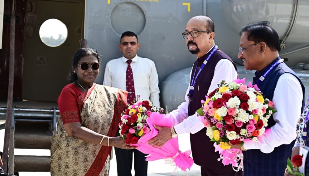रायपुर।राष्ट्रपति द्रौपदी मुर्मु के अंबिकापुर आगमन पर गांधी स्टेडियम हेलीपेड में राज्यपाल रमेन डेका ने पुष्पगुच्छ भेंट कर उनका आत्मीय स्वागत किया। इस अवसर पर मुख्यमंत्री विष्णुदेव साय भी उपस्थित थे।