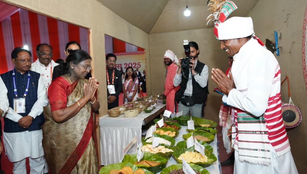 राष्ट्रपति मुर्मू ने जनजातीय संस्कृति व शिल्प को दर्शाते स्टॉलों का अवलोकन किया,पारंपरिक अखरा एवं देवगुड़ी के मॉडल में देवताओं की आराधना भी की