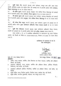 रायपुर। राज्य शासन ने 11 आईएएस अधिकारियों के तबादले किए हैं. कई जिलों के कलेक्टर इधर से उधर किए गए हैं. कोरबा कलेक्टर अजीत वसंत को सरगुजा का कलेक्टर बनाया गया है. वहीं दंतेवाड़ा कलेक्टर की ज़िम्मेदारी संभाल रहे कुणाल दुदावत को कोरबा कलेक्टर की नई जिम्मेदारी सौंपी गई है. सुकमा कलेक्टर देवेश ध्रुव को दंतेवाड़ा और नारायणपुर कलेक्टर रही प्रतिष्ठा ममगाई को बेमेतरा का कलेक्टर बनाया गया है. नम्रता जैन को नारायणपुर की जिम्मेदारी दी गई है.