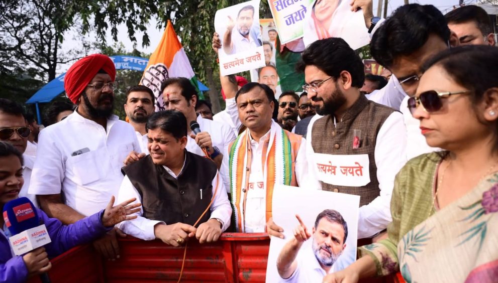 रायपुर। नेशनल हेराल्ड मामले में अदालत द्वारा ईडी की चार्जशीट को खारिज किये जाने के बाद कांग्रेस देशभर में भाजपा के प्रदेश कार्यालय का घेराव किया। राजधानी रायपुर में भी कांग्रेस ने प्रदेश अध्यक्ष दीपक बैज के नेतृत्व में भाजपा के कार्यालय एकात्म परिसर का घेराव किया। इस अवसर पर एआईसीसी महासचिव एवं पूर्व मुख्यमंत्री भूपेश बघेल एवं वरिष्ठ नेतागण, पूर्व मंत्रीगण, विधायकगण बड़ी संख्या में कांग्रेस के पदधिकारी, कार्यकर्ता शामिल हुए।