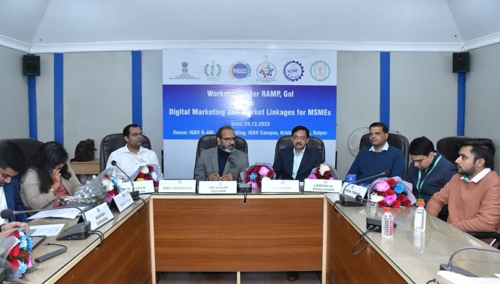 रायपुर। सूक्ष्म, लघु एवं मध्यम उद्यम मंत्रालय (MSME), भारत सरकार की RAMP योजना के अंतर्गत “डिजिटल मार्केटिंग एवं MSMEs के लिए मार्केट लिंकिज” विषय पर एक कार्यशाला का आयोजन पीएचडी चैंबर ऑफ कॉमर्स एंड इंडस्ट्री (PHDCCI), छत्तीसगढ़ स्टेट चैप्टर द्वारा छत्तीसगढ़ राज्य औद्योगिक विकास निगम (CSIDC) एवं IGKV R-ABI के सहयोग से किया गया।