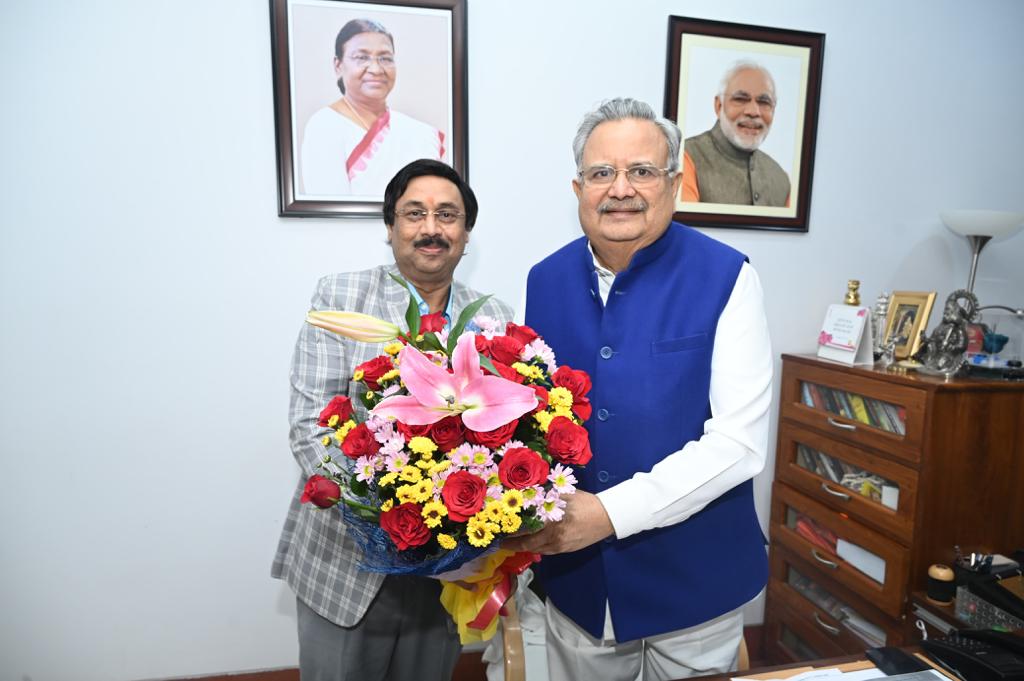 रायपुर। छत्तीसगढ़ विधानसभा सचिव दिनेश शर्मा ने नव वर्ष के अवसर पर आज विधानसभा अध्यक्ष डॉ. रमन सिंह जी को उनके निवास कार्यालय में पुष्प गुच्छ भेंट कर उन्हें नए साल की बधाई एवं शुभकामनाएं दी। विधानसभा सचिव दिनेश शर्मा ने इस अवसर पर विश्वास व्यक्त किया कि माननीय विधानसभा अध्यक्ष डॉ. रमन सिंह जी के उच्च संसदीय ज्ञान एवं अनुभव का लाभ छत्तीसगढ़ विधानसभा को प्राप्त होता रहेगा और उनके नेतृत्व में छत्तीसगढ़ विधानसभा विकास के नए सोपान तय करेगी।