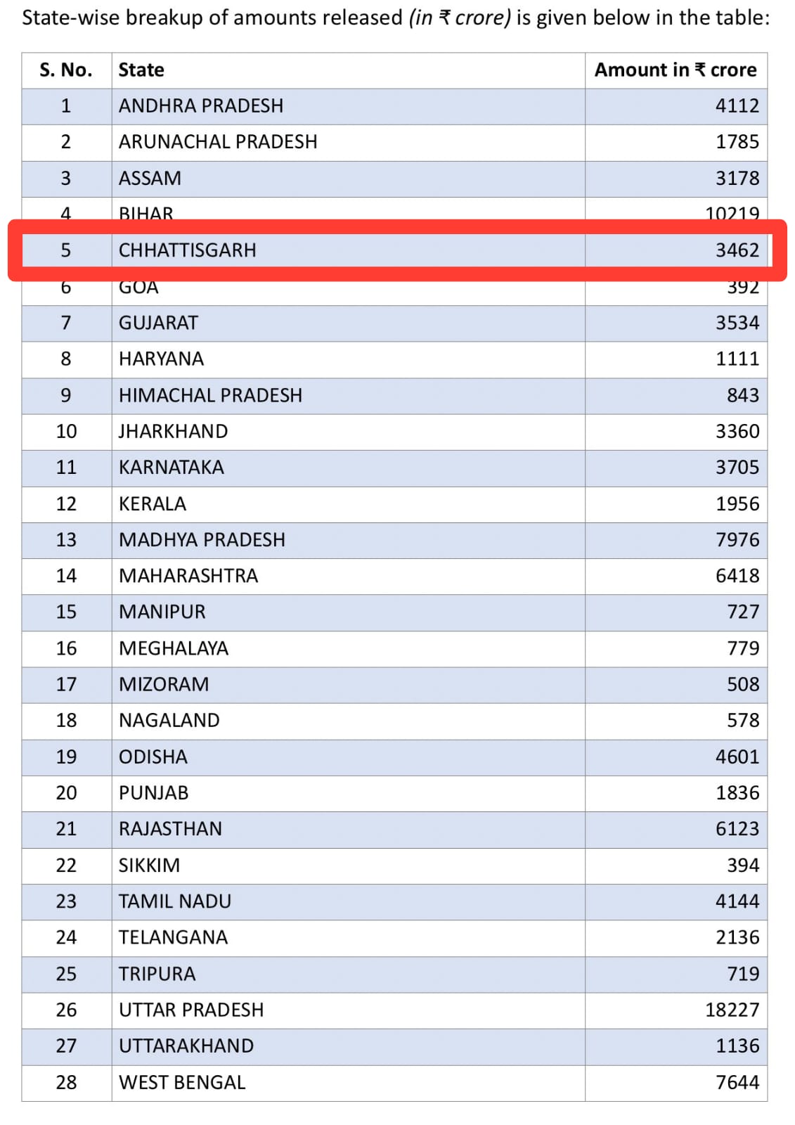 #प्रदेश केंद्र सरकार ने छत्तीसगढ़ को कर हस्तांतरण (Tax Devolution) अंतर्गत दी 3,462 करोड़ रुपये की स्वीकृति ० मुख्यमंत्री विष्णु देव साय ने प्रधानमंत्री नरेंद्र मोदी एवं केंद्रीय वित्त मंत्री के प्रति किया आभार व्यक्त रायपुर।मुख्यमंत्री विष्णु Vineeta Haldar / 3 months Comment (0) (105)