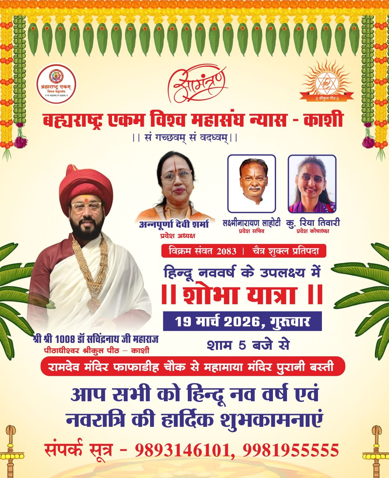 हिन्दू नववर्ष पर 19 मार्च को निकलेगी भव्य
