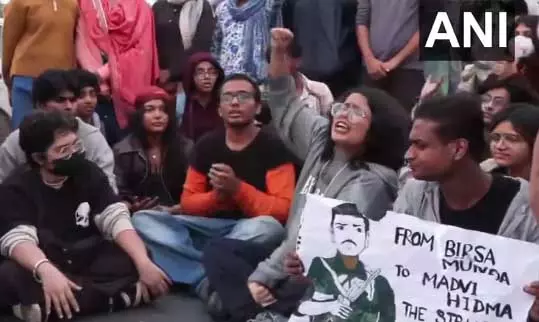 हिड़मा के समर्थकों ने दिल्ली में किया प्रदर्शन,