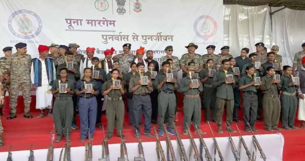 कांकेर। कांकेर जिले में सक्रिय रहे 21 नक्सलियों ने आज पुलिस के समक्ष आत्मसमर्पण कर मुख्यधारा में लौटने का निर्णय लिया। जंगलवार कॉलेज परिसर में आयोजित कार्यक्रम में सभी नक्सलियों का रेड कारपेट बिछाकर स्वागत किया गया। बस्तर रेंज के आईजी पी. सुंदरराज ने आत्मसमर्पण करने वाले नक्सलियों को संविधान की प्रति भेंट कर मुख्यधारा में उनका स्वागत किया। नक्सलवाद के खात्मे को लेकर जारी अभियान के बीच पुलिस ने हाल ही में अपनी रणनीति में बदलाव किया है। अब मुठभेड़ की जगह आत्मसमर्पण को प्राथमिकता दी जा रही है। पुलिस ने नक्सलियों को साफ संदेश दिया था कि यदि वे आत्मसमर्पण कर समाज की मुख्यधारा में लौटते हैं तो […]