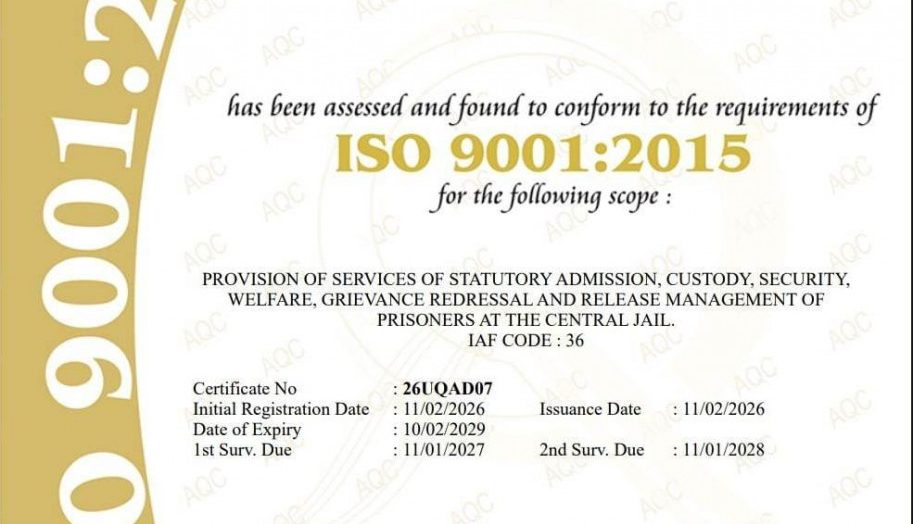 छत्तीसगढ़ की 4 सेंट्रल जेलों को मिला आईएसओ गुणवत्ता प्रमाणन,राज्य में जेलों की व्यवस्था व गुणवत्ता सुधार का परिणाम