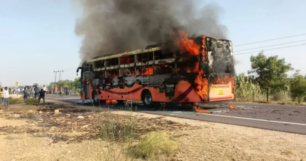 जैसलमेर में चलती बस में लगी आग, 10 से ज्यादा लोगों की जिंदा जलने की आशंका