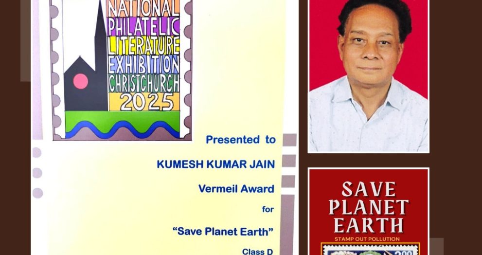 रायपुर। 19वीं न्यूज़ीलैंड नेशनल फिलैटेलिक लिटरेचर एग्जीबिशन (NLPE) 2025 में भारत के डॉ. कुमेश कुमार जैन (लोढ़ा) को प्रतिष्ठित “Vermeil Award” से सम्मानित किया गया। यह अंतरराष्ट्रीय प्रदर्शनी 6 दिसंबर 2025 को क्राइस्टचर्च, न्यूज़ीलैंड में आयोजित हुई। डॉ. जैन को यह सम्मान उनकी उत्कृष्ट साहित्यिक कृति “Save Planet Earth” के लिए प्रदान किया गया, जिसे प्रदर्शनी में क्लास D श्रेणी में प्रस्तुत किया गया था। पर्यावरण संरक्षण विषय पर आधारित इस कृति ने निर्णायक मंडल का विशेष ध्यान आकर्षित किया। “Vermeil Award” अंतरराष्ट्रीय स्तर पर एक सम्मानजनक पुरस्कार माना जाता है, जो उच्च गुणवत्ता और उत्कृष्ट प्रस्तुति के लिए दिया जाता है। इस उपलब्धि से न केवल डॉ. जैन […]