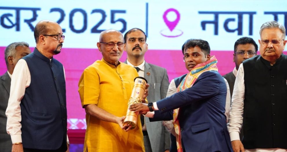 ० उपराष्ट्रपति सी. पी. राधाकृष्णन ने छत्तीसगढ़ स्थापना दिवस राज्य उत्सव में दिया सम्मान रायपुर। छत्तीसगढ़ की राजधानी में आयोजित राज्य अलंकरण सम्मान समारोह में इस वर्ष 2025 का प्रतिष्ठित “छत्तीसगढ़ राज्य अलंकरण चंदूलाल चंद्राकर सम्मान” भारत के उपराष्ट्रपति श्री सी. पी. राधाकृष्णन ने छत्तीसगढ़ स्थापना दिवस राज्य उत्सव में दूरदर्शन समाचार के वरिष्ठ संवाददाता डॉ. सोमेश कुमार पटेल को प्रदान किया। पत्रकारिता के क्षेत्र में डॉ. पटेल के दीर्घ अनुभव, निष्पक्ष रिपोर्टिंग, जनहित से जुड़े मुद्दों पर सजगता और समाज के प्रति समर्पण को देखते हुए उन्हें इस सम्मान के लिए चयनित किया गया।कार्यक्रम में छत्तीसगढ़ के राज्यपाल रमेन डेका , छत्तीसगढ़ विधान सभा अध्यक्ष डॉक्टर रमन सिंह, छत्तीसगढ़ […]