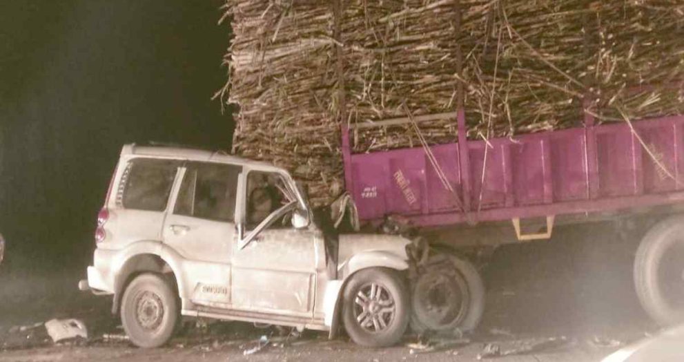 CG Accident : मजदूरों से भरी स्कॉर्पियो गन्ने से लदे ट्रैक्टर से टकराई, दो की मौके पर मौत,3 घायल