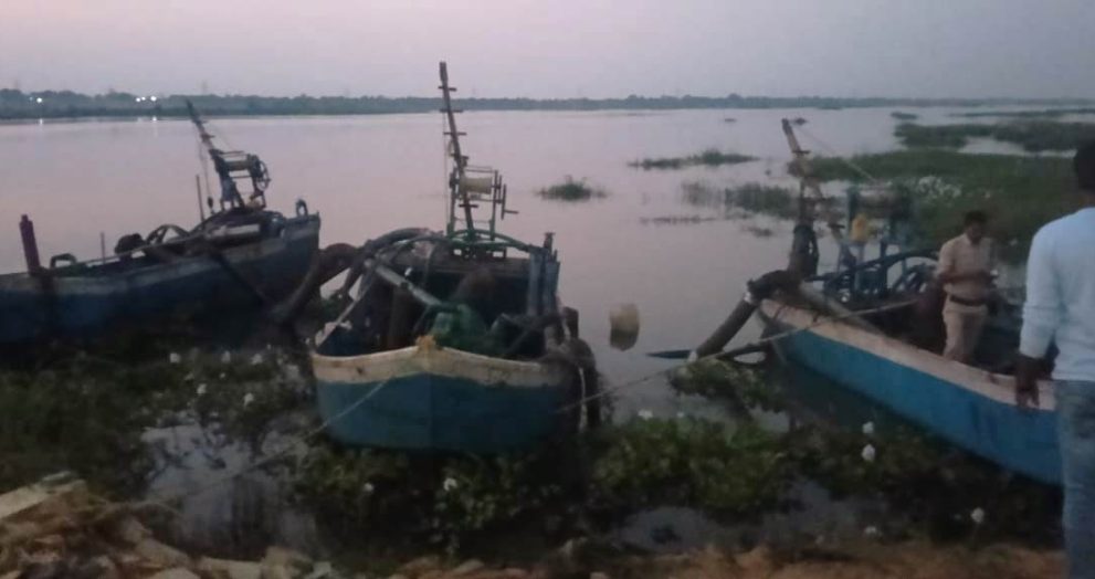 महानदी रेत घाट में कार्रवाई करते हुए अवैध रेत उत्खनन के मामले में चार नौकाएं जब्त