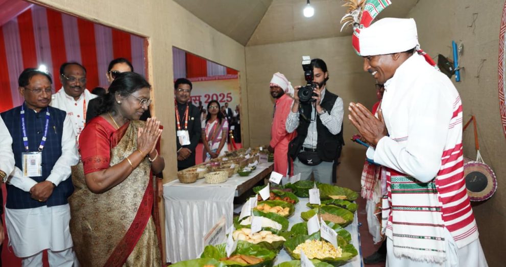 राष्ट्रपति मुर्मू ने जनजातीय संस्कृति व शिल्प को दर्शाते स्टॉलों का अवलोकन किया,पारंपरिक अखरा एवं देवगुड़ी के मॉडल में देवताओं की आराधना भी की
