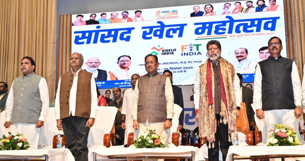 ० खिलाड़ियों के सपनों को पंख देने के लिए सरकार प्रतिबद्ध: मुख्यमंत्री साय रायपुर।सांसद खेल महोत्सव– ‘फिट युवा, विकसित भारत’ का समापन समारोह आज पं. दीनदयाल उपाध्याय ऑडिटोरियम, रायपुर में उत्साहपूर्ण और गरिमामय वातावरण में सम्पन्न हुआ। इस अवसर पर मुख्यमंत्री विष्णु देव साय मुख्य अतिथि के रूप में उपस्थित रहे। कार्यक्रम के दौरान प्रधानमंत्री श्री नरेन्द्र मोदी, केन्द्रीय खेल एवं युवा कार्य मंत्री मनसुख मांडविया तथा देशभर के सांसद वीडियो कॉन्फ्रेंसिंग के माध्यम से जुड़े और समापन समारोह को वर्चुअल रूप से संबोधित किया। ऑडिटोरियम में उपस्थित जनसमूह ने प्रधानमंत्री के प्रेरक उद्बोधन को ध्यानपूर्वक सुना। मुख्यमंत्री साय ने अपने संबोधन की शुरुआत सुशासन दिवस की शुभकामनाओं के साथ […]