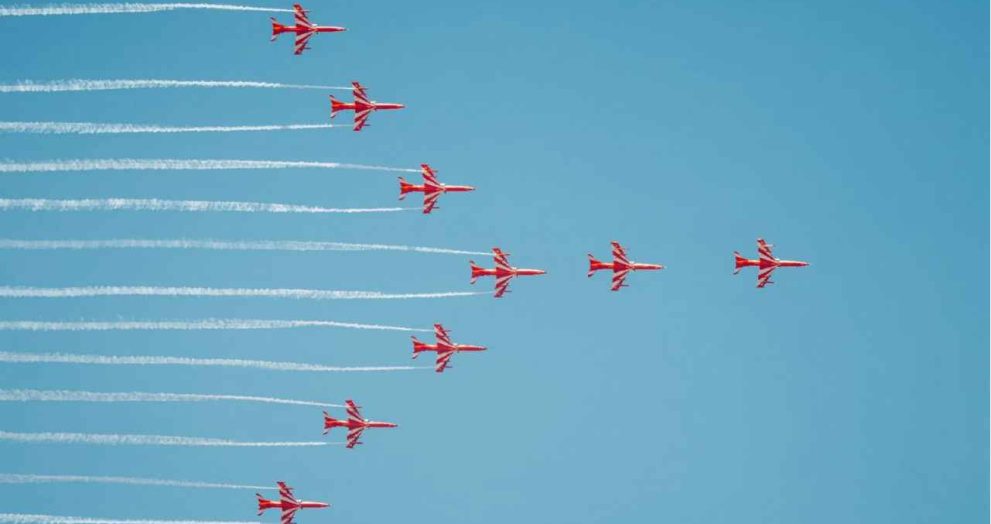 सूर्यकिरण एयरोबेटिक टीम ने नवा रायपुर में आसमान में दिखाए रोमांचक करतब, बनाया तिरंगा