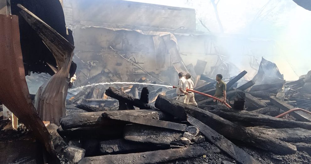 रायपुर।राजधानी रायपुर के फाफाडीह स्थित टिंबर मार्केट में बुधवार देर रात भीषण आग लगने से हड़कंप मच गया। आग पायनियर मार्केटिंग के कैलाश टिंबर गोदाम में भड़की, जिसने देखते ही देखते विकराल रूप धारण कर लिया। घटना की सूचना मिलते ही दमकल विभाग की 6 से अधिक गाड़ियां मौके पर पहुंचीं। कड़ी मशक्कत के बाद आग पर काबू पाया जा सका। आगजनी की इस घटना में गोदाम में रखा प्लाईवुड सहित लाखों रुपये का सामान जलकर खाक हो गया। सूचना मिलते ही पुलिस के वरिष्ठ अधिकारी भी मौके पर पहुंचे और स्थिति का जायजा लिया। फिलहाल आग लगने के कारणों का पता नहीं चल पाया है। यह पूरा मामला देवेंद्र […]