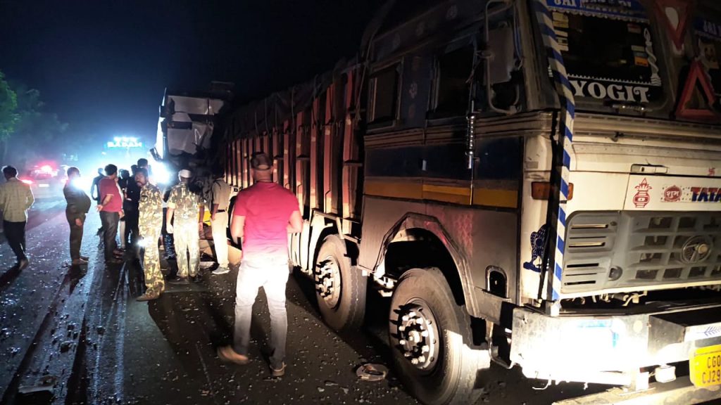 पुसपाल घाट में गिट्टी से भरा हाईवा पलटा,